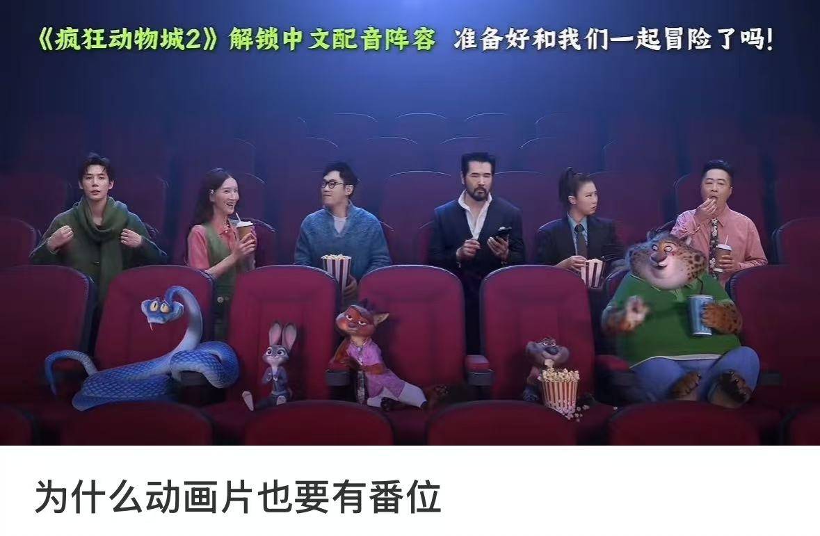 这恰好成为了争议爆发的导火索。相比其他由明星配音主角的进口片,《疯狂动物城2》呈现了荒诞的一幕——戏里,配音演员是主角;戏外,主角给明星当陪衬。